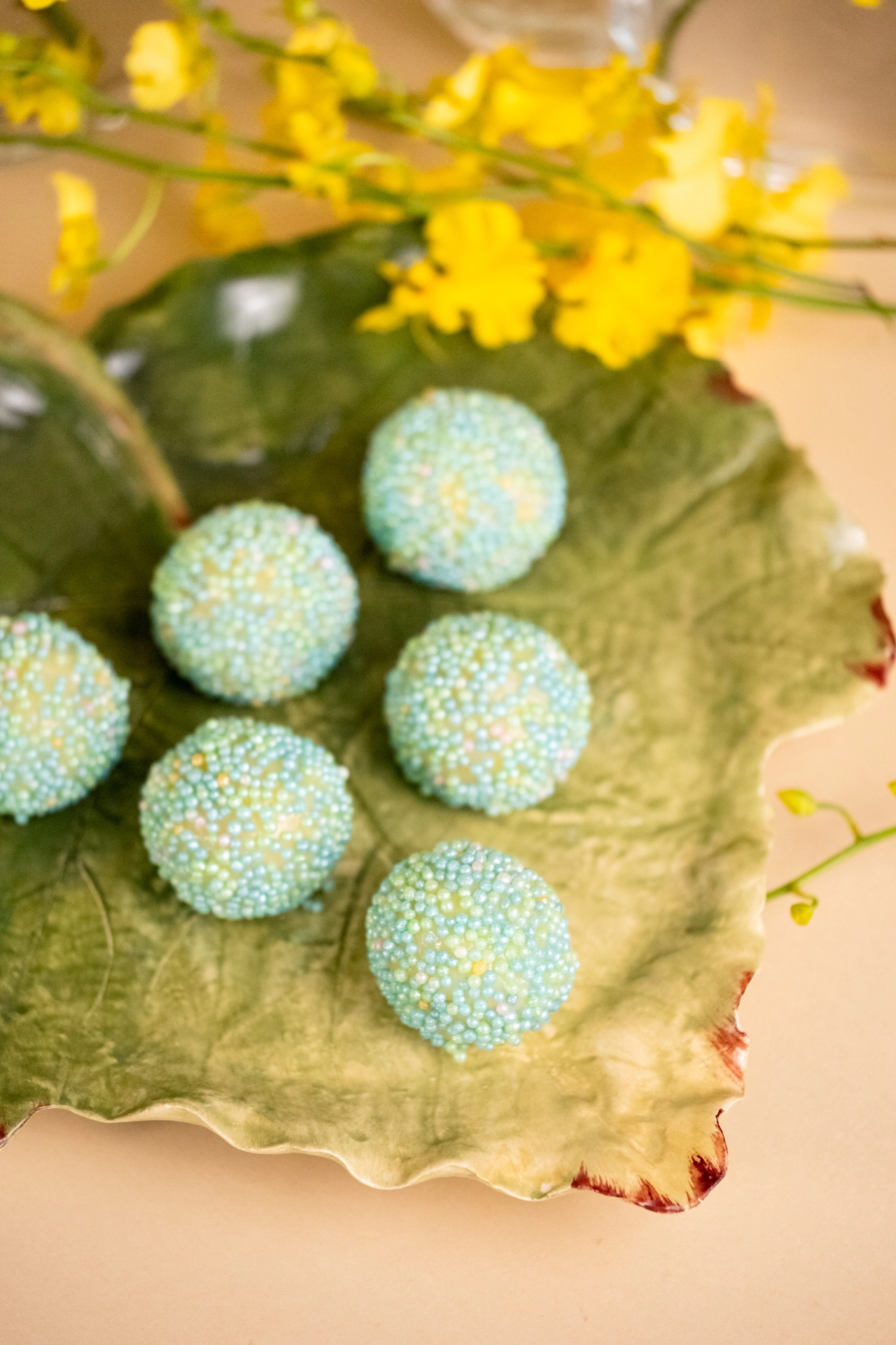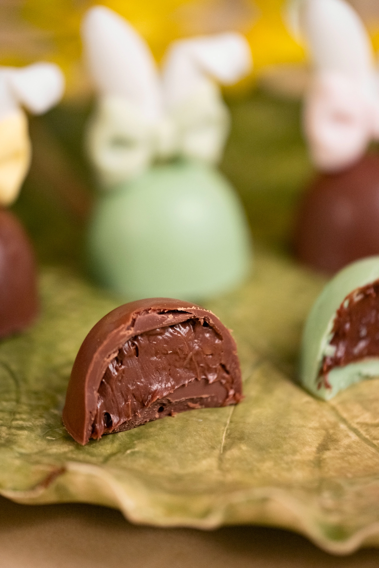 Bombom de ovomaltine verde com orelhinhas de açúcar | Páscoa 2026