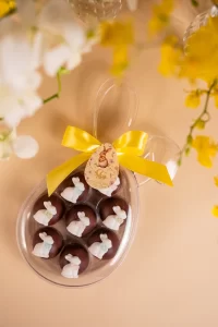 Caixa acrílica coelho com 8 brigadeiros | Páscoa 2026 quantidade