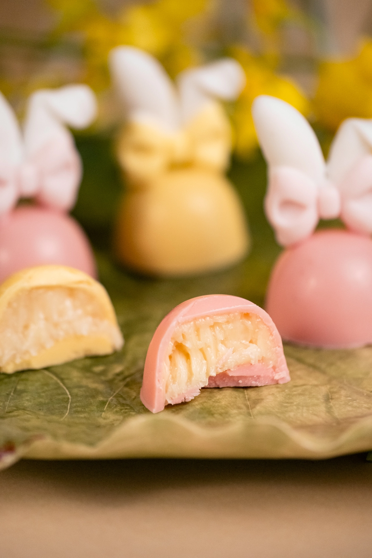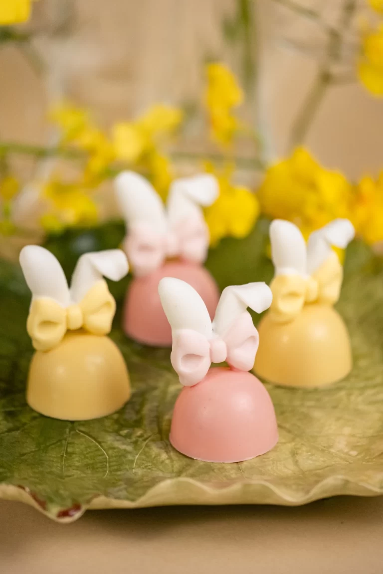 Bombom de coco rosa ou amarelo com orelhinhas de açúcar | Páscoa 2026