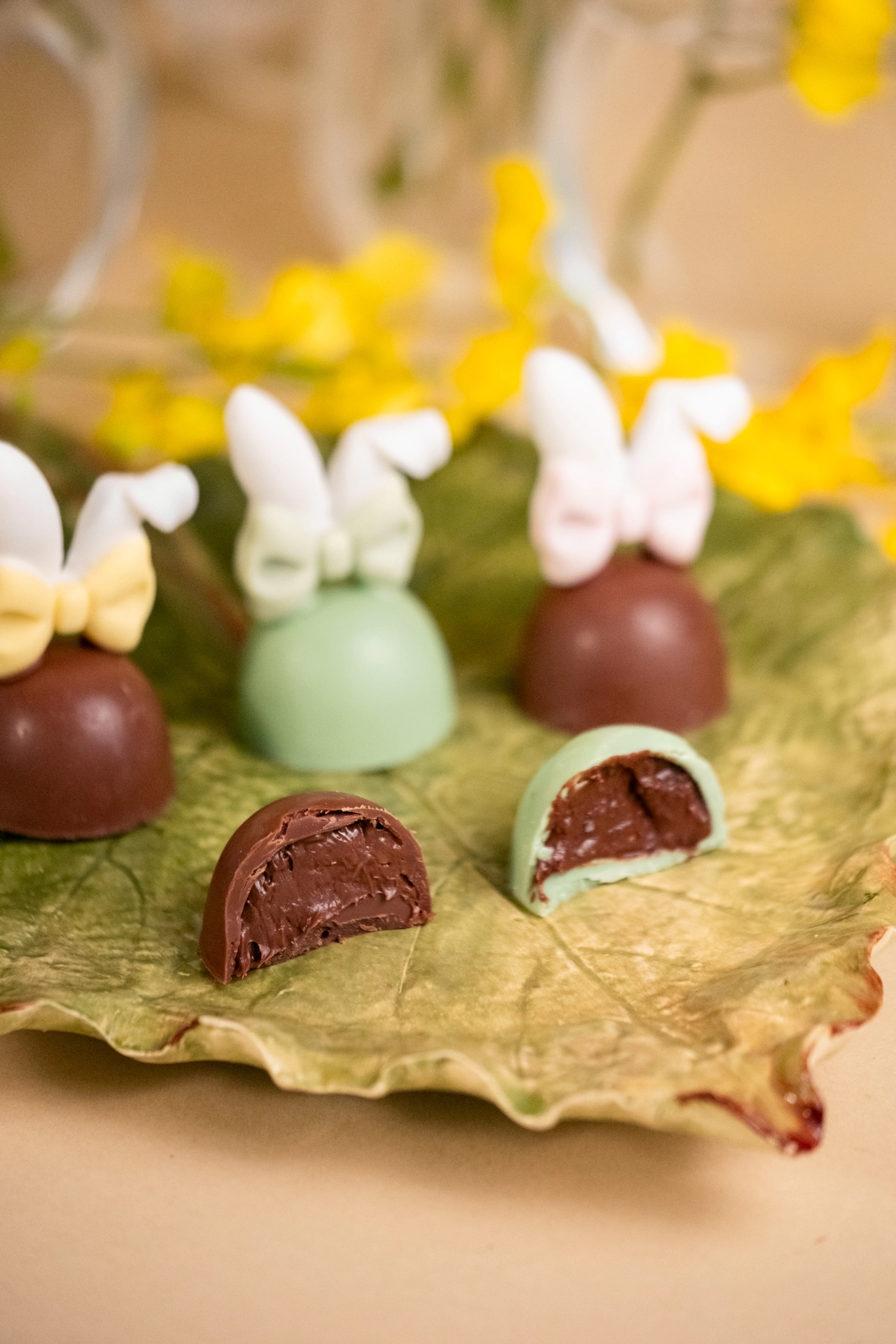 Bombom de ovomaltine verde com orelhinhas de açúcar | Páscoa 2026