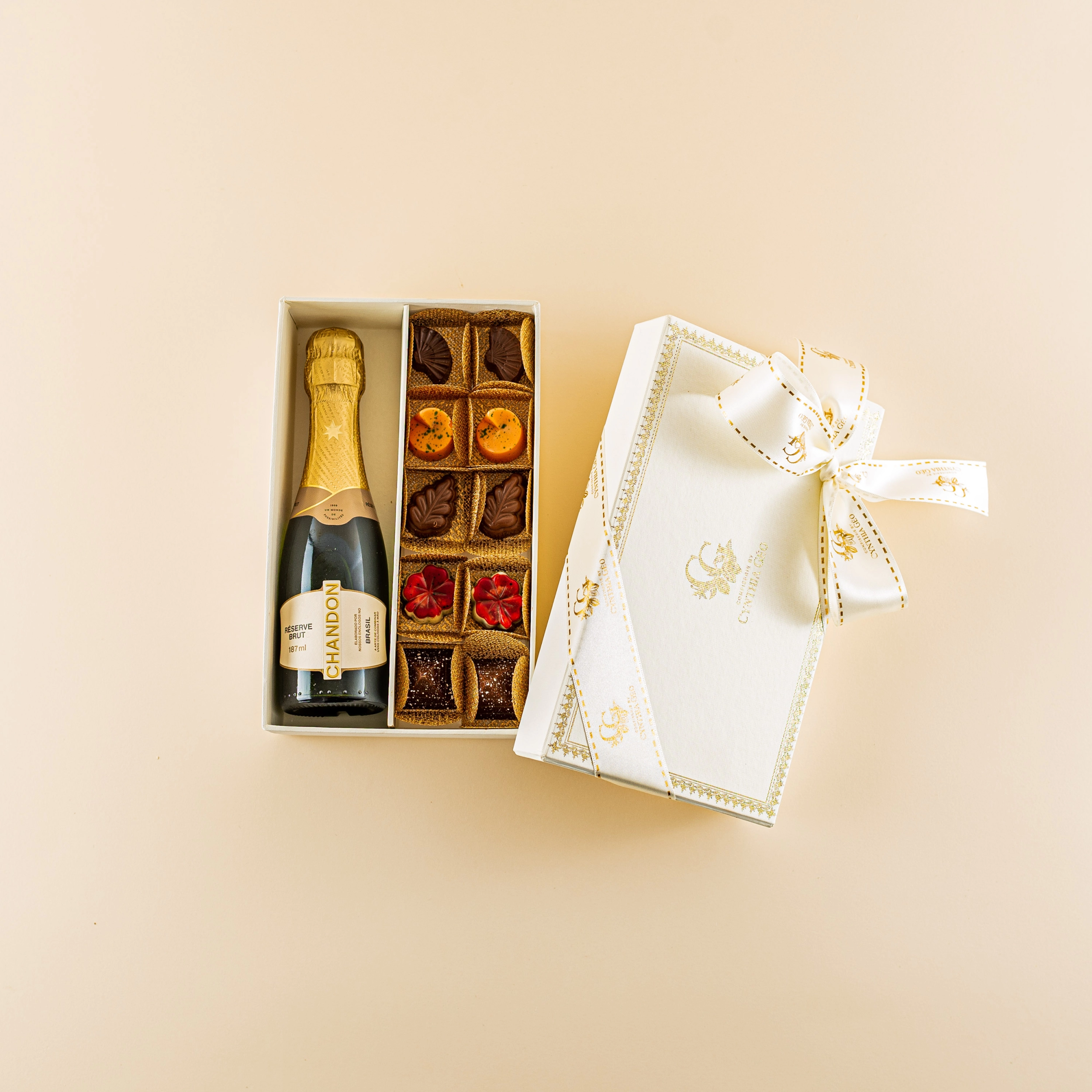 Caixa com Chandon e 12 bombons