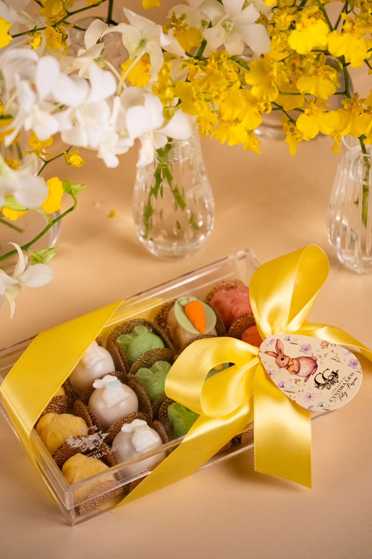 Caixa de acrílico com 15 bombons de páscoa sortidos
