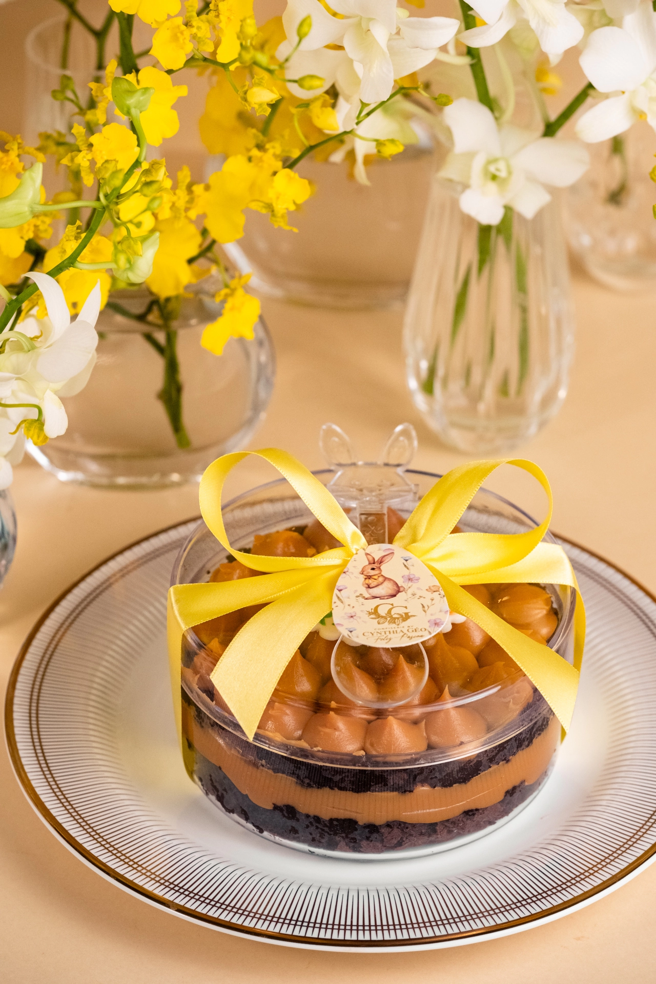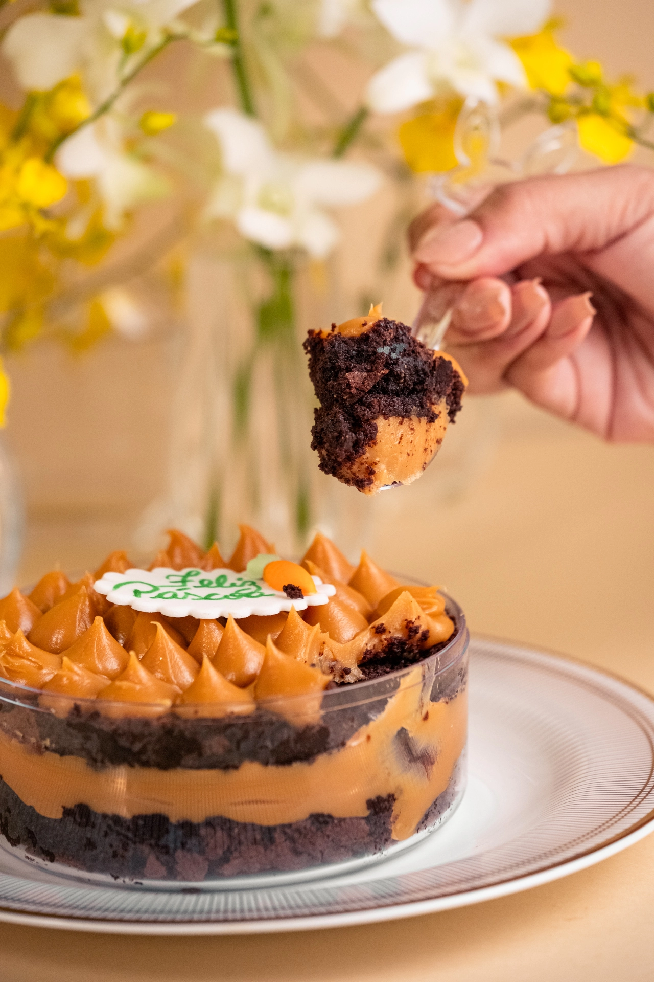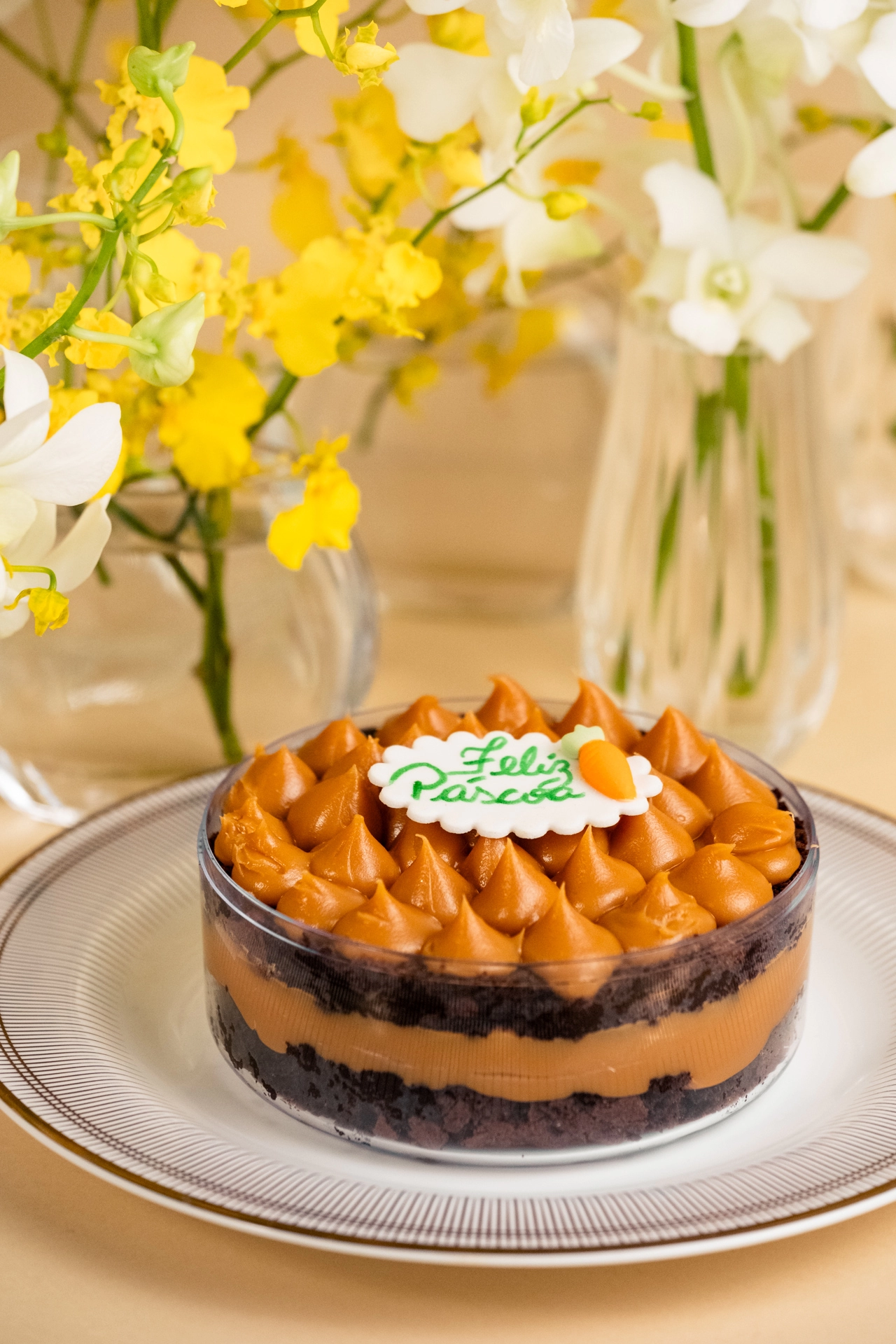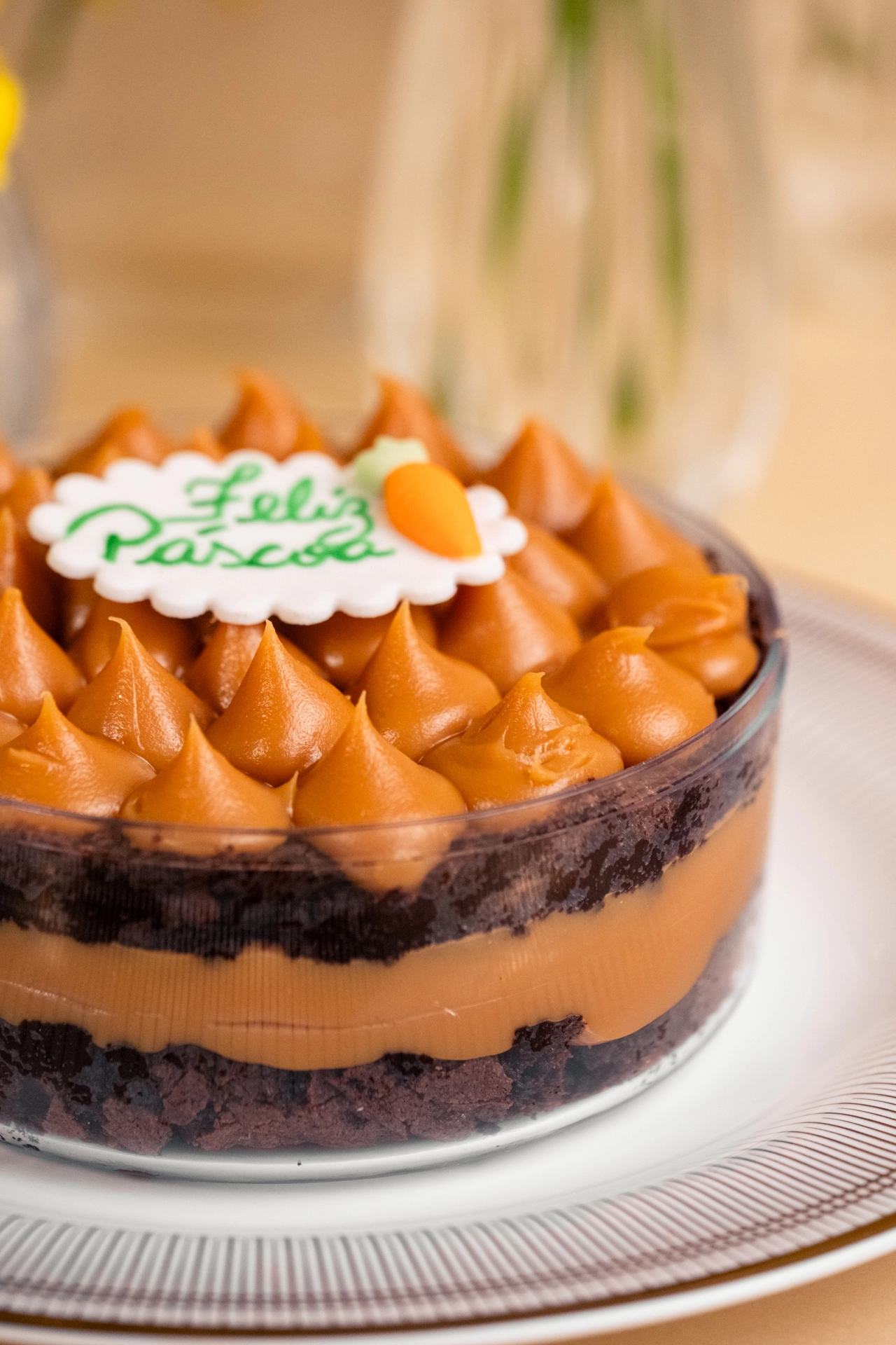 Caixa de acrílico redonda com brownie e doce de leite | Páscoa 2026