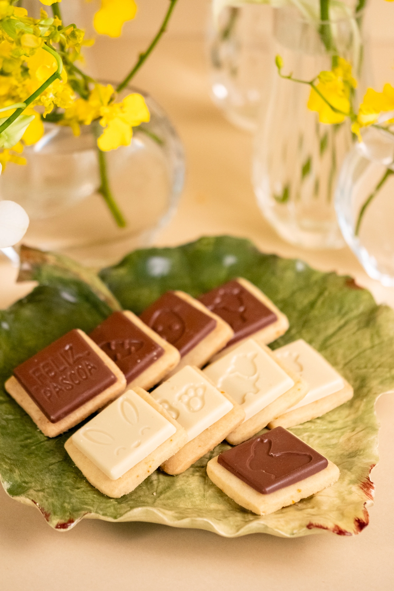 Caixa Sweet com 21 Biscoitos amanteigado de baunilha com placa de chocolate
