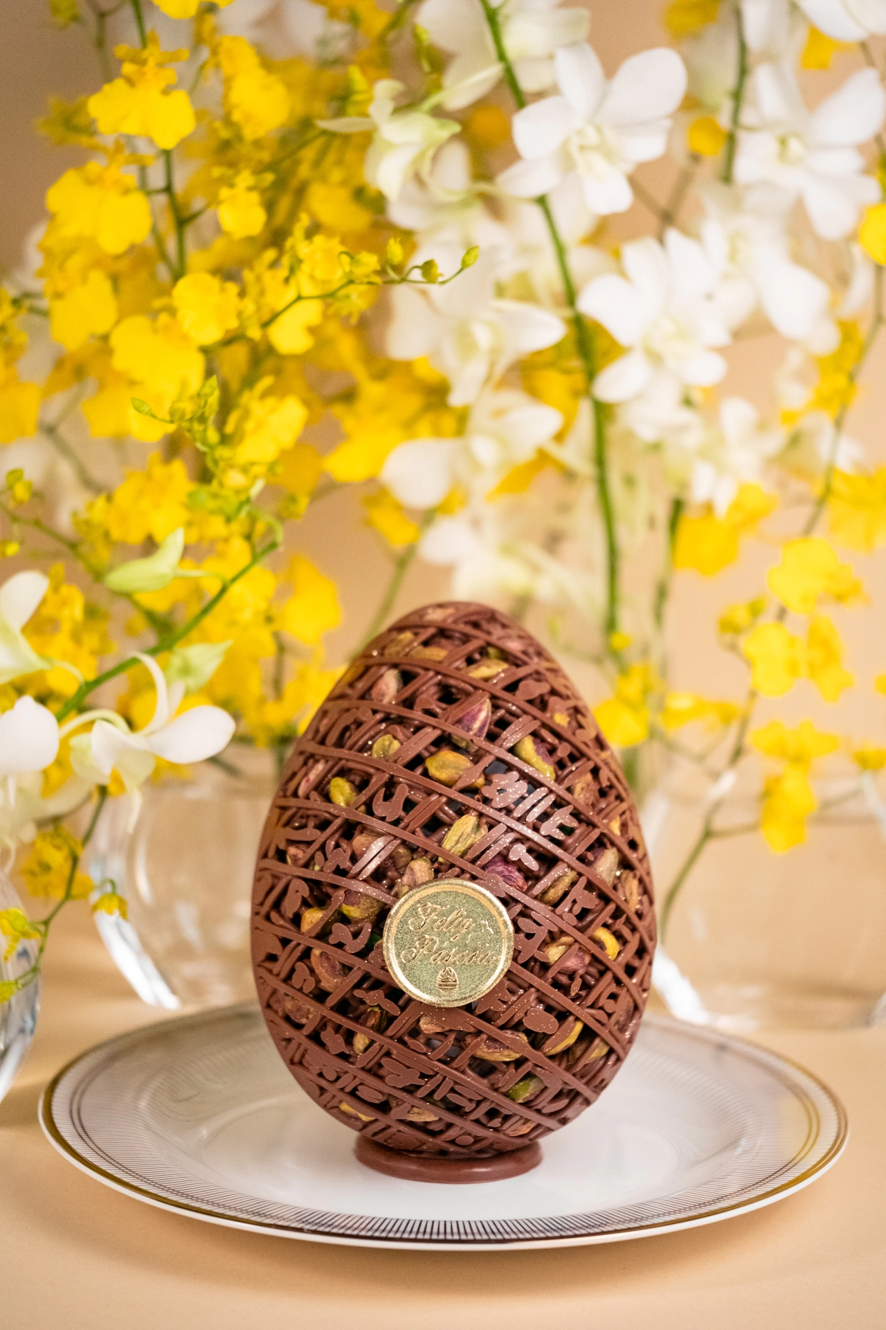 Inspirado na sensação da barra de Dubai, um ovo de páscoa com recheio de pistache diferente de tudo que você já viu. Metade recheado com um intenso e cremoso creme de pistache e massa folhada belga, e a outra metade com o chocolate belga ao leite. Contém bombons sortidos dentro.