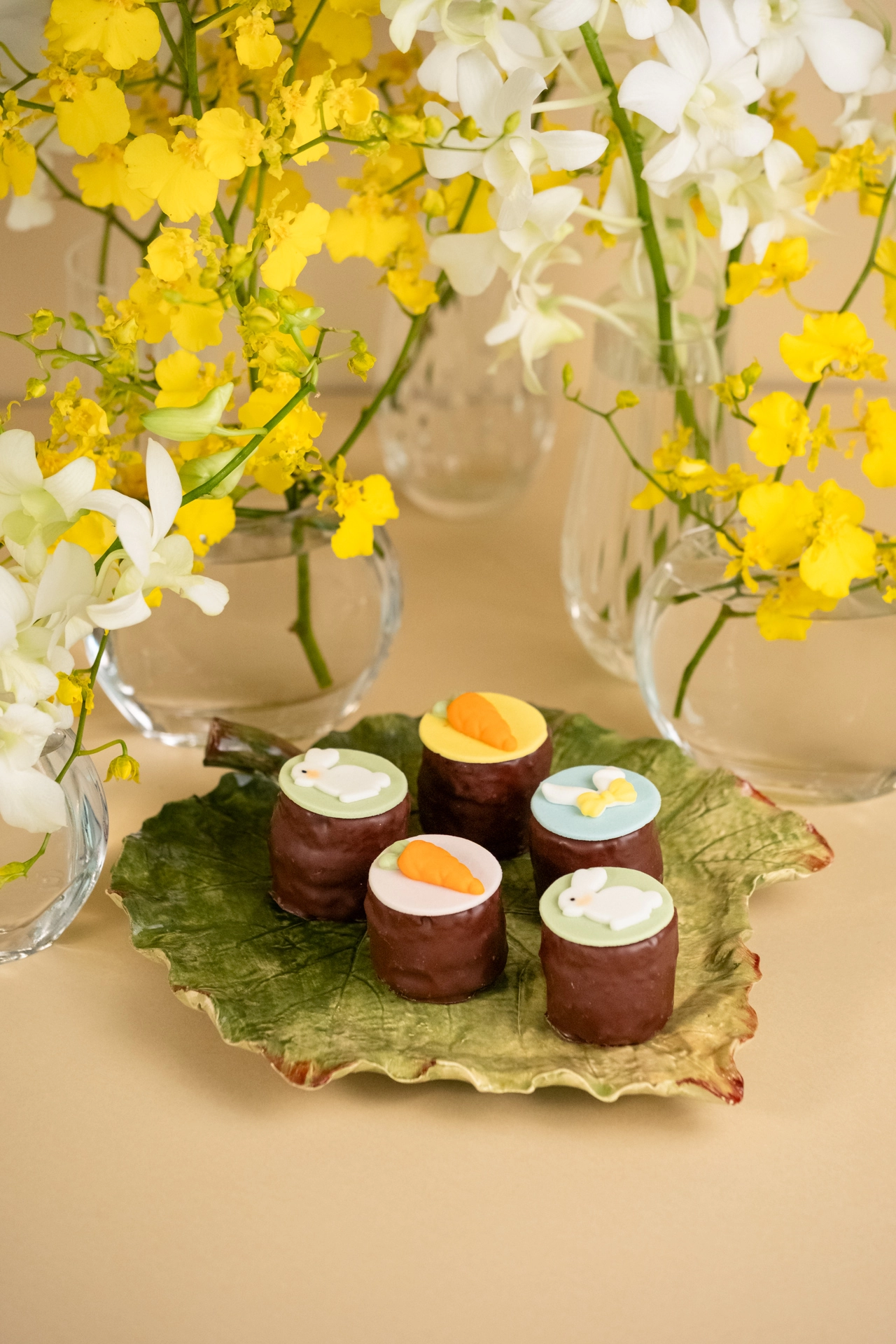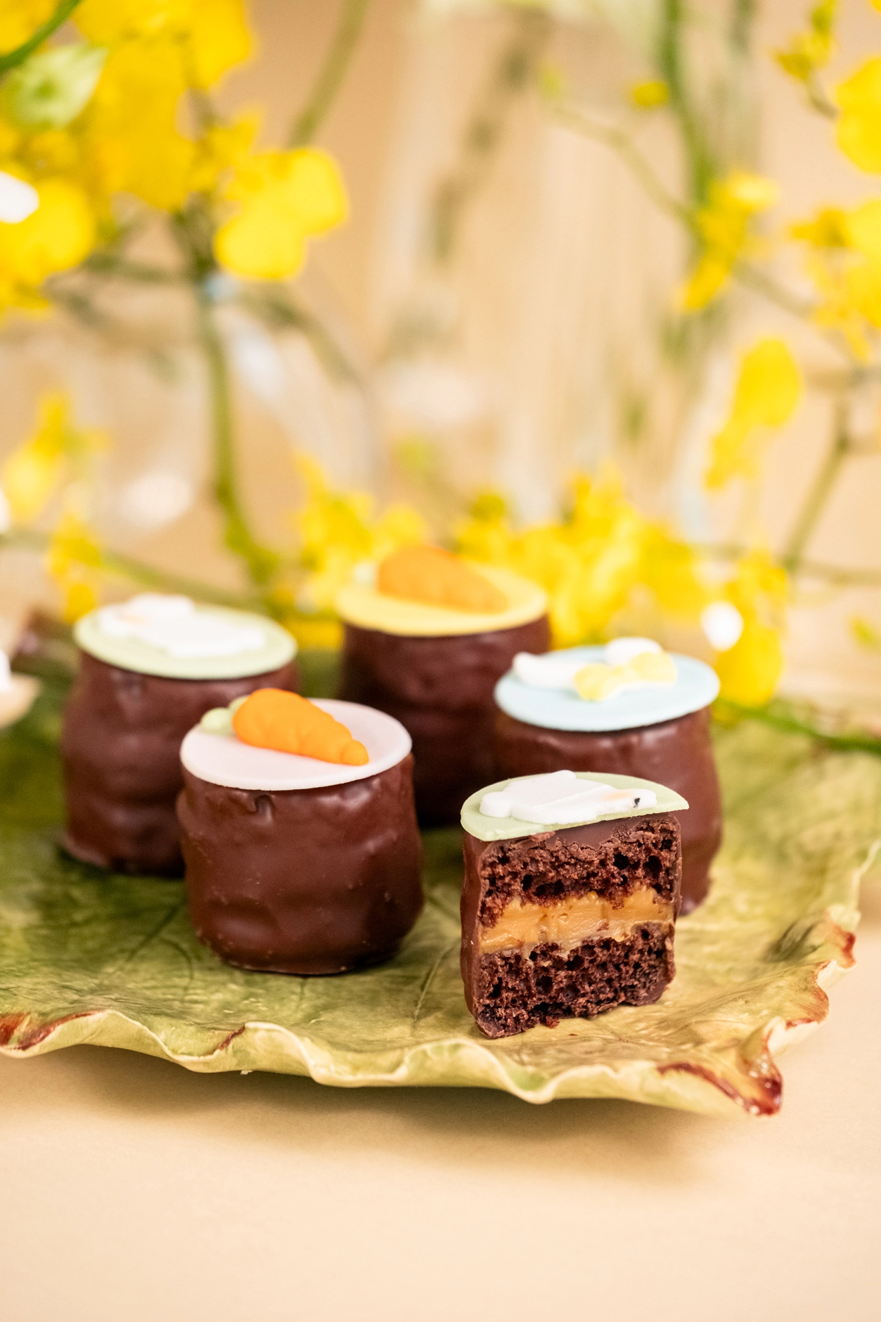 Pão de mel de doce de leite com placa decorativa temática de páscoa